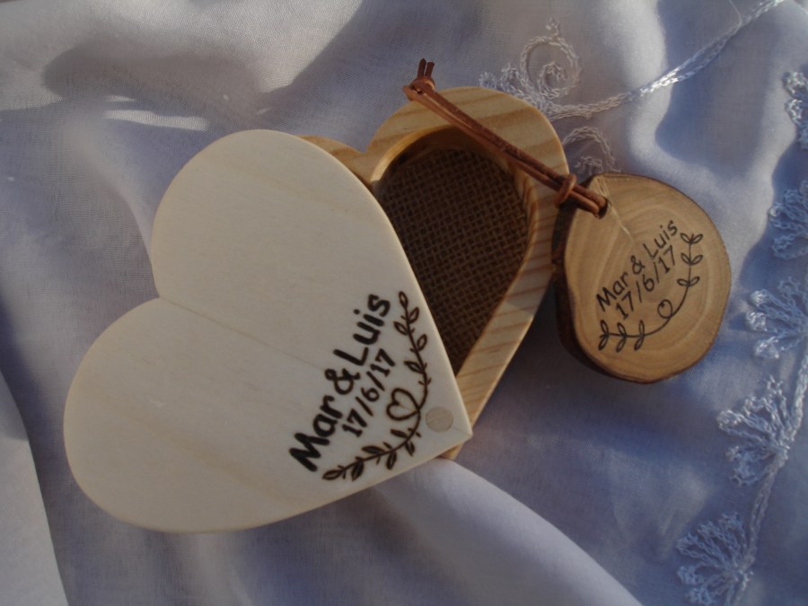 En cada porta alianzas, adjunto un pequeño llavero como regalo.