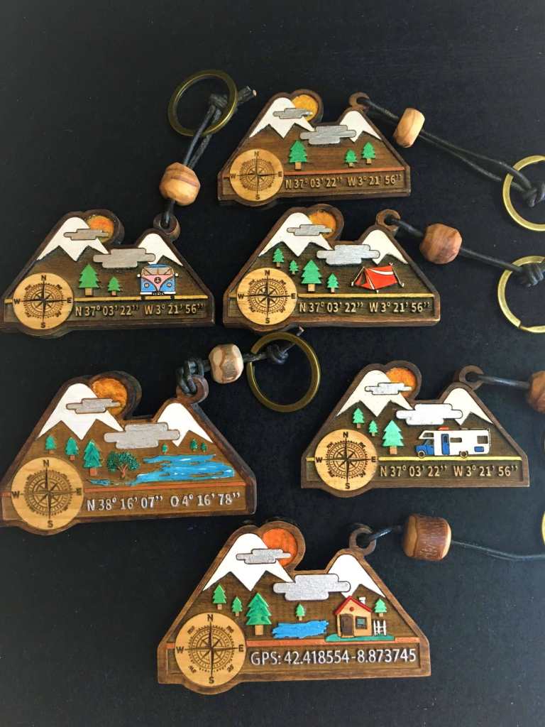 Son unos llaveros diseñados por madeMadera, y no encontraras otros igual por más que lo busques, algún día nos los copiaran, mientras tanto, es un diseño único. Hechos con madera de olivo, y aparte de grabar tus coordenadas, por la parte trasera, tienes espacio para grabar algún logotipo, alguna frase, número de teléfono, incluso no seria mala opción grabar el grupo sanguíneo, etc. Como siempre decimos, no dudes en contactar y te responderemos lo antes posible. Estamos en España y hay que tener en cuenta el horario.