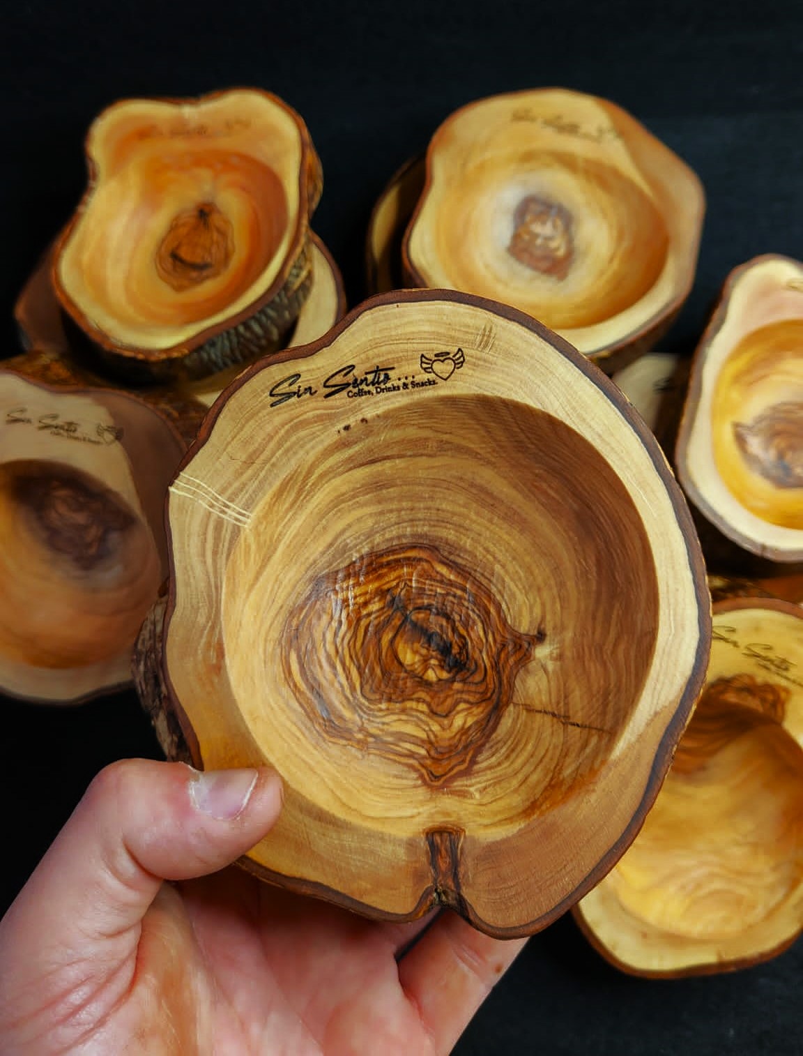 Sumérgete en la elegancia de la presentación gastronómica con nuestros cuencos para aperitivos tallados en madera de olivo. Cada detalle resalta la belleza natural de este noble material, creando una experiencia única para tus comensales.