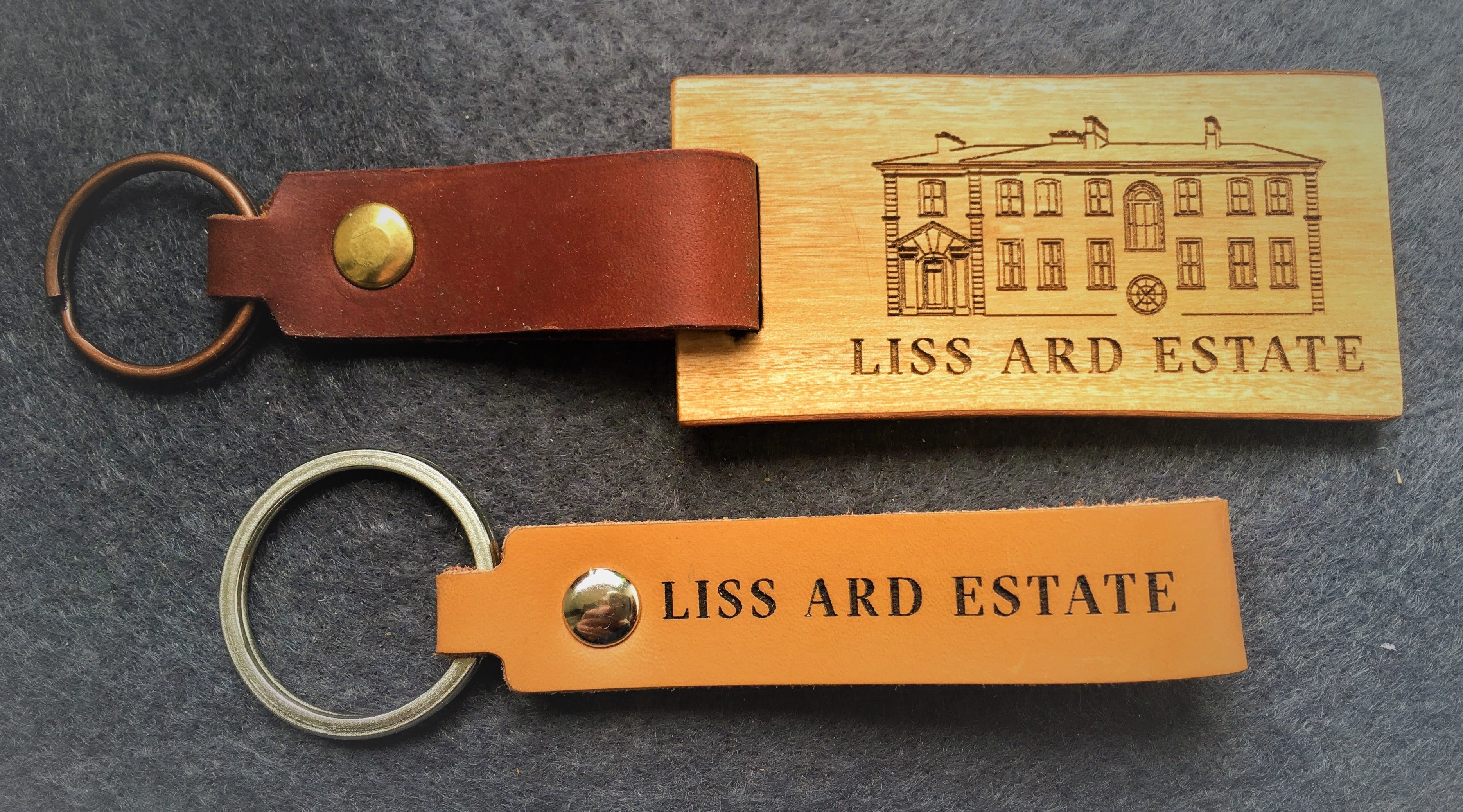 llaveros de cuero y madera